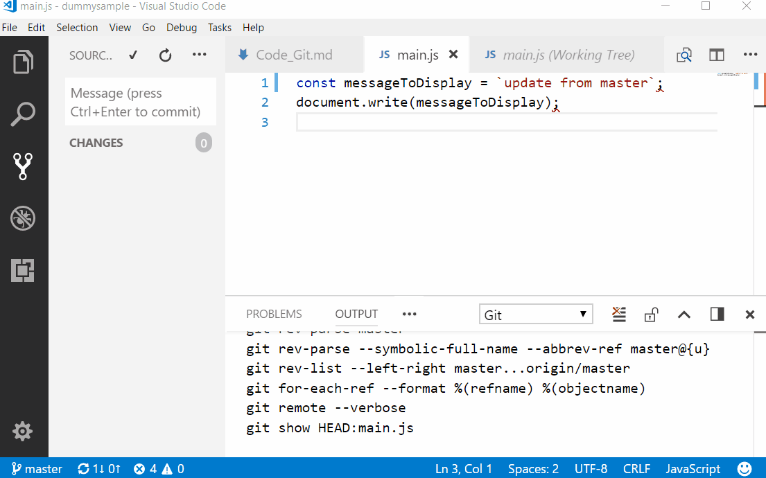 VSCode trae un cliente de Git ligero y prácticos, a caballo entre una herramienta de interfaz de usuario y tirar de línea de comandos.