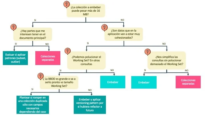 ¿Quiere esto decir que siempre tenemos que embeber documentos? La respuesta es NO, en este post vamos a dar una serie de pautas que nos podrán servir de ayuda cuando estemos modelando y necesitemos decidir si embeber una colección o no.